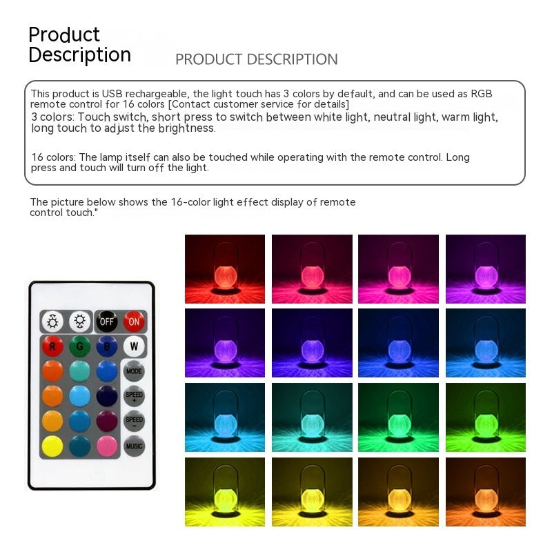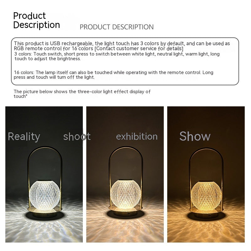 Metal Portable Ambience Light Bedroom Bedside Lamp Home Decor